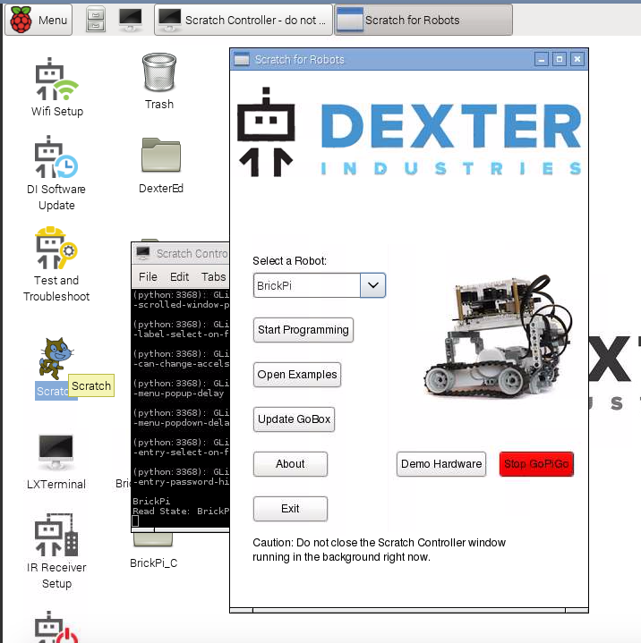 A dialogue box to select your robot will appear. Change the robot to “BrickPi”. Then click “Start Programming”.