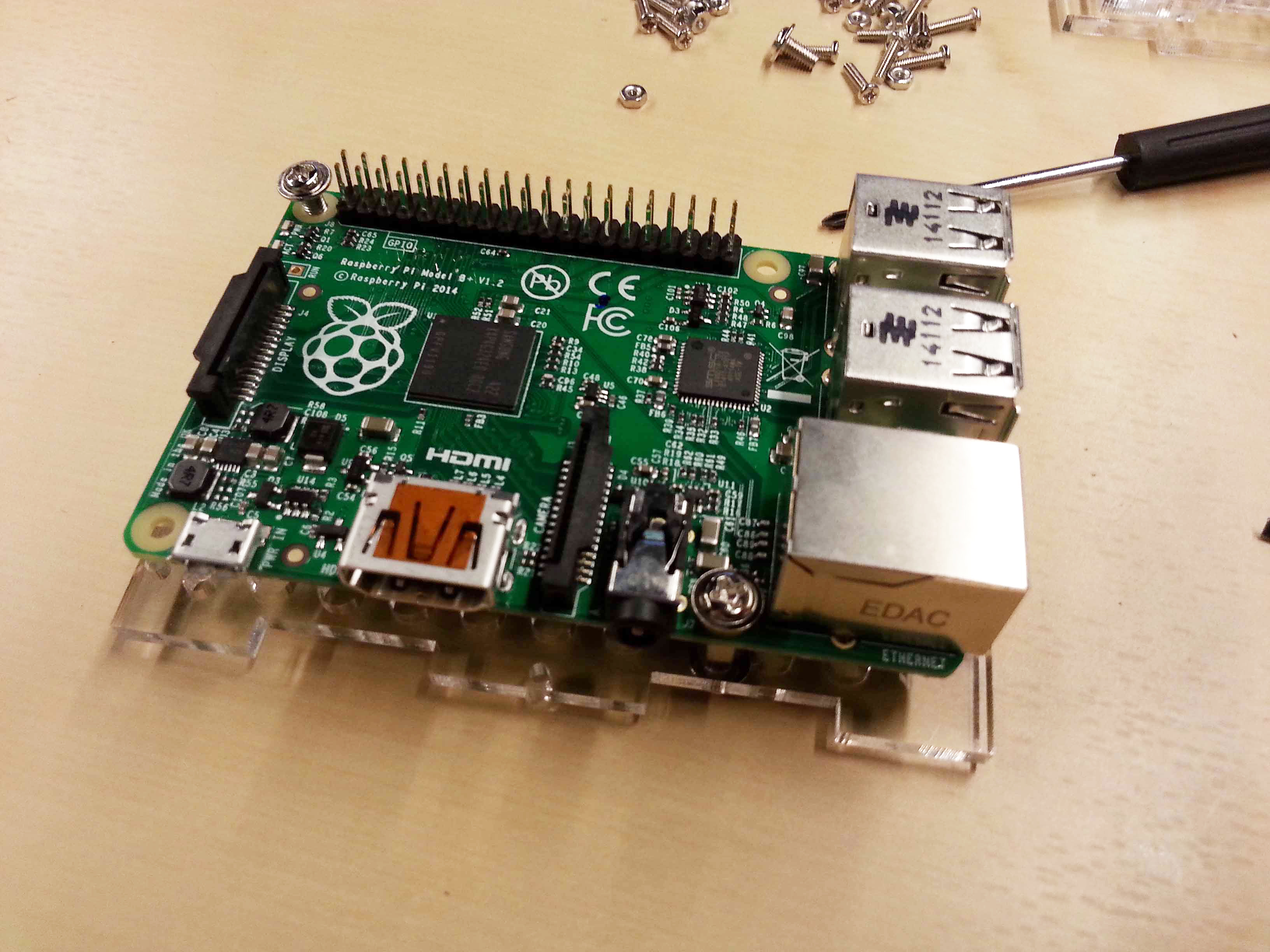The screws will be tight! You might want to screw them all the way through the Pi to open up the holes before screwing tightly to the acrylic base Part 1.