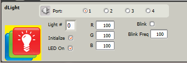 Give your NXT a bright future with the dLight. The dLight is a bright LED that can be controlled by your NXT. A dLight is capable of producing millions of different colors that can be continuously on or blink in various patterns. Up to four dLights can be daisy chained on a single sensor port and still be controlled individually.