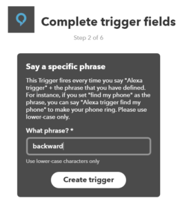 Start talking! Remember your commands need to start with “Alexa trigger . . . ” and then the command you want to robot to do.